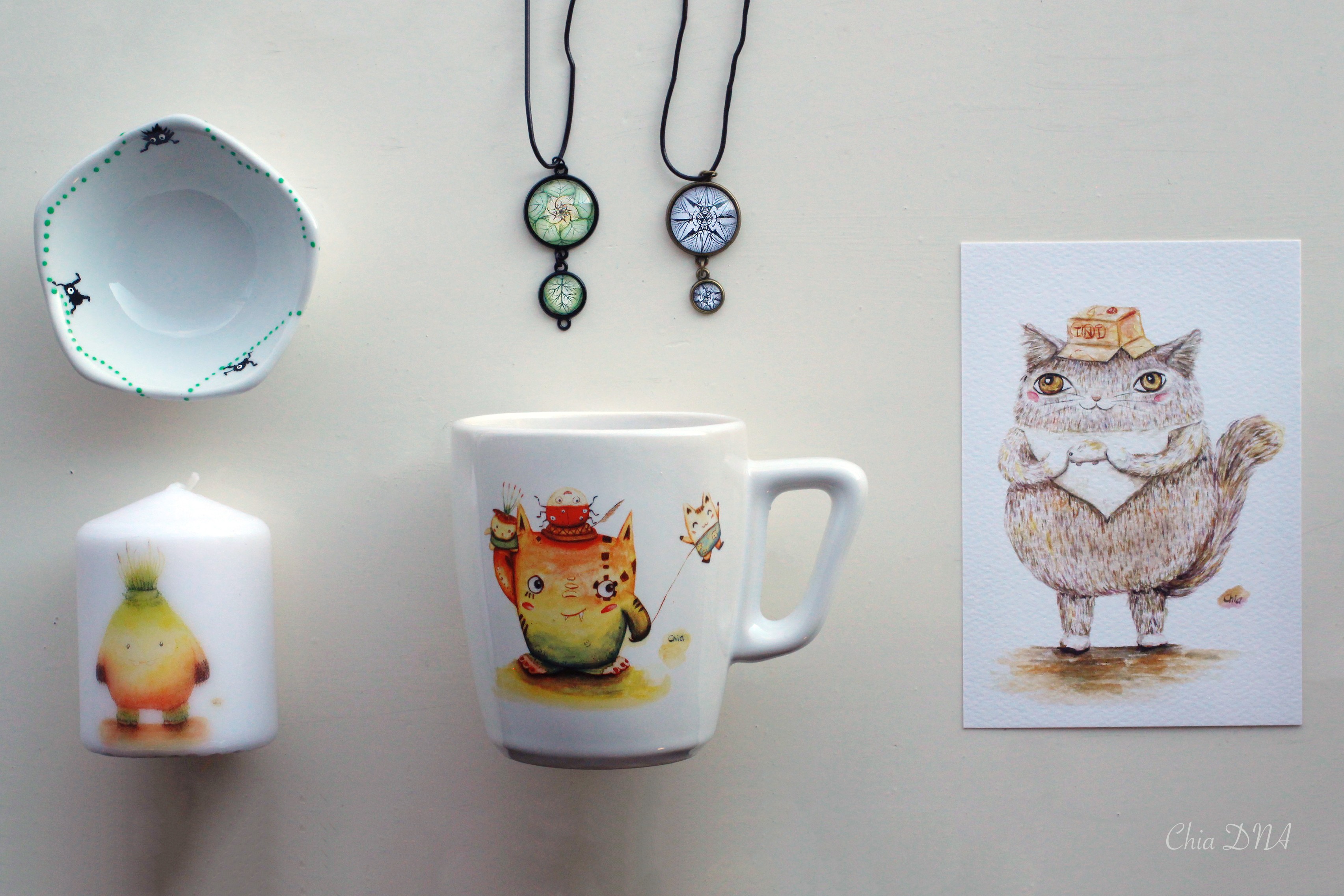 – Customized Products: Postcards, Cards, Cups, Plates, dolls, design for textile etc. ( You can contact Chia DNA to create customized products for you and your friends.)